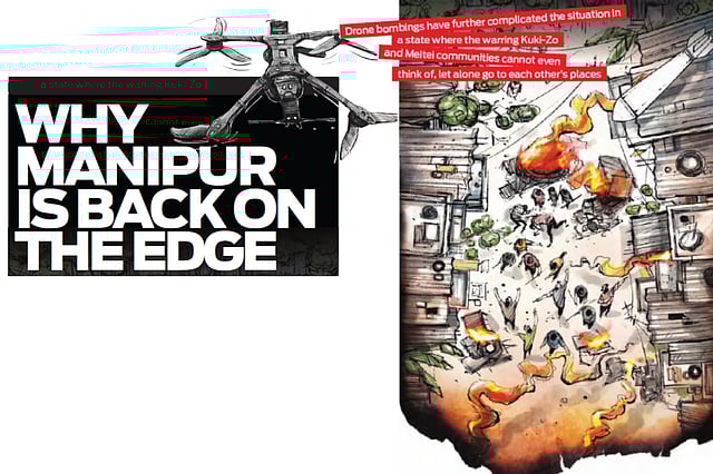 The first spell of the ethnic violence was marked by gunfire and arson. Now, hi-tech drones are being used, the Manipur police said, adding RPGs and long-range rockets are also in play. According to police, these rockets can travel a distance of more than 3 km. The attacks from the skies have added to the scare and made people more vulnerable.
