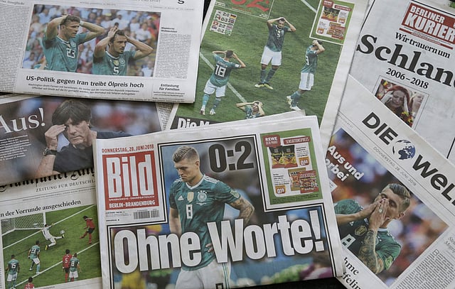 Other newspapers, like the Rheinische Post and the Tagesspiegel, simply went with the headline "Out", while the Stuttgarter Zeitung spoke of a "historic debacle".