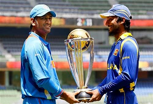 India's captain Mahendra Singh Dhoni and Sri Lanka's captain Kumar Sangakkara pose for a photograph with the Cricket World Cup trophy in Mumbai. APIndian cricket fans pose with a replica of the cricket World Cup trophy and cheer for their home team, in Kolkata. AP.Indian cricket fans look on after painting their faces in the colors of the national flag and the world cup trophy ahead of the ICC World Cup cricket final match. APIndian artists paint and create a replica of the World Cup trophy on the head of a cricket fan. APAn Indian artist gives finishing touches to a replica of the cricket World Cup trophy in Kolkata, India. AP.Police officers guard outside the Wankhede stadium ahead of the final match of the Cricket World Cup between India and Sri Lanka in Mumbai. AP