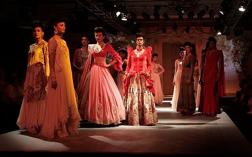 Bollywood actor Madhuri Dixit poses for the media after Indian designer Varun Bahl show during Delhi Couture Week 2011. (AP)A model displays creations of Indian designer Varun Bahl during Delhi Couture Week 2011, in New Delhi, Friday, July 22, 2011. (AP)A model displays creation of Indian designer J.J. Valaya, during Delhi Couture Week 2011, in New Delhi, Friday, July 22, 2011. (AP)A model displays creation of Indian designer J.J. Valaya, during Delhi Couture Week 2011, in New Delhi, Friday, July 22, 2011. (AP)Models display creations of Indian designer J.J. Valaya, during Delhi Couture Week 2011, in New Delhi, Friday, July 22, 2011. (AP)A model displays creation of Indian designer J.J. Valaya, during Delhi Couture Week 2011. (AP)A model displays creation of Indian designer J.J. Valaya, during Delhi Couture Week 2011. (AP)A model displays creation of Indian designer J.J. Valaya, during Delhi Couture Week 2011. (AP)A model displays creations of Indian designer Varun Bahl during Delhi Couture Week 2011. (AP)