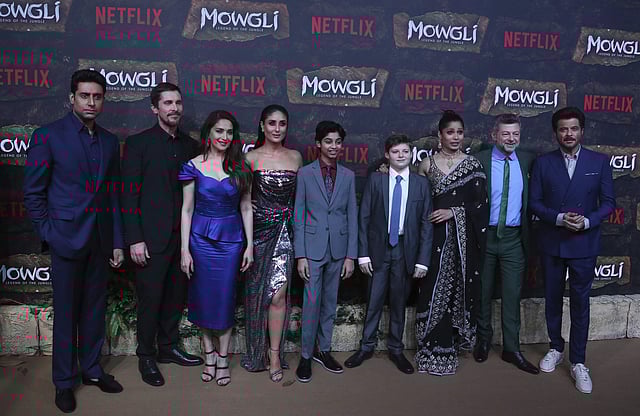 Netflix's Mowgli is Andy Serkis' take on Rudyard Kipling's classic story about a man-cub raised by wolves in the jungles of India. Andy Serkis (in photo with Anil Kapoor) said: 'In this age, you can't make a movie on this subject and not ground it in Indian culture. Mowgli is about the complex, psychological, emotional journey of self-discovery. It is about what it is to be torn between two worlds, that's the heart of it.' (Photo | AP)Christian Bale, on left, has voiced panther Bagheera, an elder brother-mentor to Mowgli. Abhishek Bachchan has voiced Bagheera in the Hindi version. (Photo | AP)(left to right) Freida Pinto has dubbed for both the versions of her character. She plays Messua, the human adoptive mother of Mowgli in the film. Kareena Kapoor has dubbed for the python Kaa. Madhuri Dixit has lent voice to Mowgli's wolf mother, Nisha. (Photo | PTI)It will be interesting to see talents from two industries mingle over a story, written by a British writer, who was born in colonial India. The tone of this version of 'Mowgli' is definitely darker than the earlier child-friendly versions of the story. (Photo | AP)