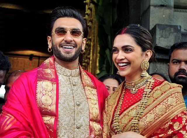 Bollywood actors Ranveer Singh and Deepika Padukone at Tirumala Tirupati Temple on their first wedding anniversary in Chittoor district of Andhra Pradesh. Here is how the 'Deepveer' love story unfolded. (Photo | PTI)