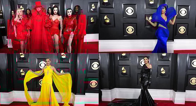 The Grammy Awards red carpet is known for more risqué fashion. From Taylor Swift's sparkly sequined two-piece to Benny Blanco's embroidered denim set, check out some of our favourite styles picked from the lot!