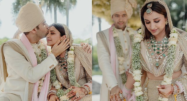 Actor Parineeti Chopra and Aam Aadmi Party (AAP) MP Raghav Chadha on Monday posted pictures from their fairytale wedding in Udaipur. The couple, both 34, tied the knot on Sunday in the presence of their families and close friends. (Parineeti Chopra Instag