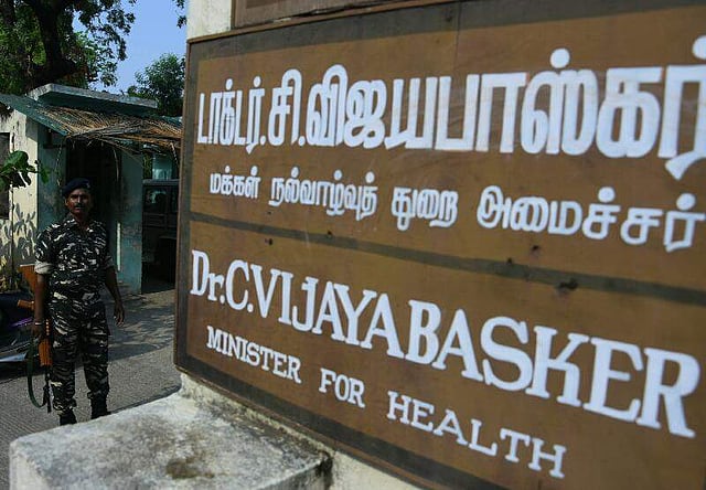 In a surprise move, income tax officials early on Friday morning conducted raids on state health minister C Vijaya Basker, actor and AISMK founder Sarathkumar, and AIADMK leader 'Chitlapakkam' Rajendran. (Ashwin Prasath | EPS)