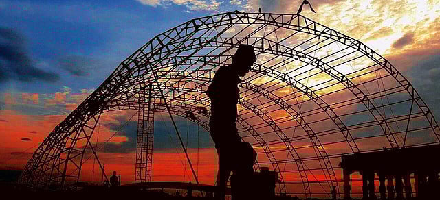 Thiruvananthapuram is gearing up to welcome the dawn of 2017. A grand marquee to host the celebrations is being set up on Shangumugham beach in the capital city. (EPS | Kaviyoor Santhosh)