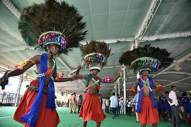 Traditional artists and performers from Telangana performed in the 'Alia Balia' celebration in Hyderabad on Sunday, marking the culmination of this year's Dussehra celebrations. (EPS | R Satish Babu)