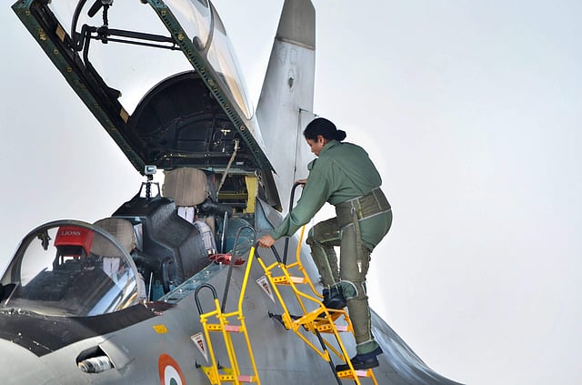 The country's first woman defence minister described the 30-minute sortie as 'wonderful'. (Photo | PTI)Wearing the pilot’s G-suit, the 58-year old Sitharaman sat in the rear seat behind the pilot in the cockpit of IAF’s frontline combat jet which took off from the Jodhpur air base. The plane flew towards the west of Jodhpur, sources said.Prior to the sortie, the minister was briefed by the pilot. She also familiarised herself with the formidable fighter jet and its cockpit.Earlier Sitharaman met IAF personnel at the air force station and reviewed the operational and combat preparedness of the force, the sources said. (Photo | PTI)Sukhoi-30 MKI is a nuclear-capable aircraft which can penetrate deep into enemy territory. (Photo | PTI)Defence Minister Nirmala Sitharaman poses for a group photo with air warriors before flying in an IAF's Sukhoi-30 MKI plane in Jodhpur on Wednesday. (Photo | PTI)