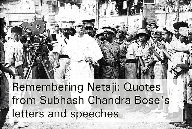 'The slippery path of diplomacy I abhor, as unsuited to my constitution. I have taken my stand on a principle and there the matter rests. I do not attach so much importance to my bodily life that I should strive to save it by a process of haggling.' - Bose wrote this to his brother from Burma's Insein Jail on May 8th, 1927, when he was offered conditional release by the government because of his illness. (Photo | AFP)'For Indians outside India, you are the creator of the present awakening in our country. The high esteem in which you are held by patriotic Indians outside India and by foreign friends of India's freedom, was increased a hunderdfold when you bravely sposored the 'Quit India' Resolution in August 1942.' - Netaji asked for Gandhi's blessings through his address over the radio on July 6, 1944. (Photo | AFP)'A revolutionary is one who believes in the justice of cause and who believes that cause is bound to prevail in the long run. He who gets depressed over failures or setbacks, is no revolutionary. The motto for a revolutionary is 'Hope for the best, but be prepared for the worst.' - This address to his countrymen inside India is from his speech at Syonan during Simla Conference of 1945. (Photo | PTI)'Whatever happens to us individually in the course of this historic struggle, there is no power on earth that can keep India enslaved any longer. It is the finger of God that is pointing the way towards India's freedom. We have only to do our duty and to pay the price of India's liberty.' - This is from a 1945 letter addressed to G S Dhillon, an officer in the Indian National Army. (Photo | PTI)'When the history of India's last War of Independence comes to be written, Indians in Burma will have an honoured place in that history.' --- Bose's last speech to his co-workers in Burma, 24th April, 1945. (Photo | PTI)