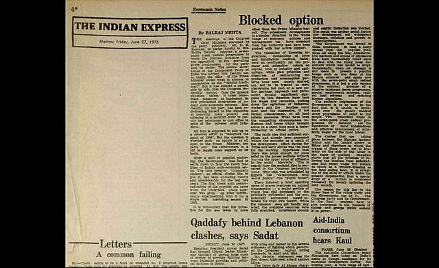 A blank editorial space to capture a black chapter. This on June 28, 1975, three days after the Emergency was declared.A newspaper clipping from June 28, 1975, mentioning the arrests made in the wake of Emergency.Another clipping from June 28, 1975, reporting the DMK demand that Prime Minister Indira Gandhi withdraw Emergency.Another clipping from June 28, 1975, three days after declaration of the Emergency.The cartoon 'Very Private View on June 28, 1975 capturing succinctly the shock of Emergency.This report from June 28, 1975 mentions Agriculture Minister Jagjivan Ram being placed under 'house arrest'.This on the resignation of Additional Solicitor General F S Nariman on June 28, 1975 again.This on the suspension of five Congress MLAs of West Bengal Assembly for 'gross breach of discipline' on June 28, 1975.Indira, Sanjay fall, says this March 21, 1977 headline celebrating the withdrawal of 'The Emergency'.