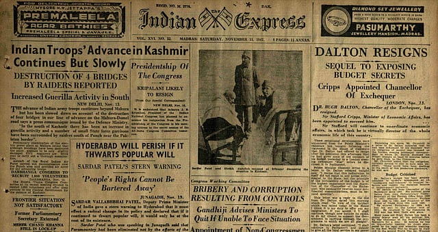 A peep into history through our archived pages of  'The Indian Express' November 15, 1947 newspaper edition.