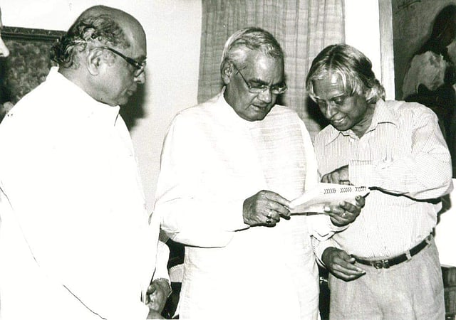 Dr A P J Abdul Kalam (right), who was then Scientific advisor to the Defence Minister and Secretary, Department of Defence Research and Development and R Chidambaram (left) Secretary, Department of Atomic Energy called on Prime Minister Atal Bihari Vajpay