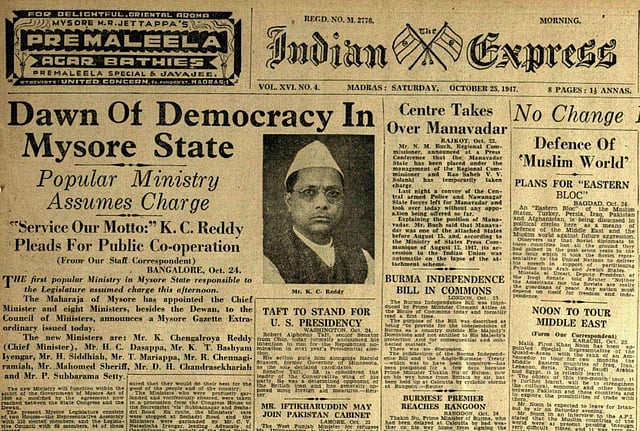 A peep into history through our archived pages of The Indian Express' October 25, 1947 newspaper edition.