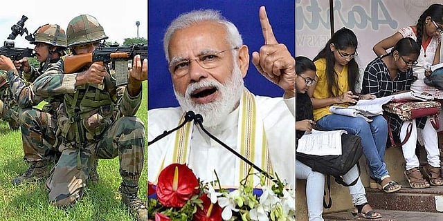 75 new medial colleges and post graduate colleges will be established.Strike capabilities of armed forces will be strengthened by giving them modern equipment.Pension facility to small and marginal farmers after 60 years of age.Will try to build Ram Mandir as soon as possible in a harmonious environment.Rs 25 lakh crore to be spent on rural development in next five years.Short-term new agriculture loans up to Rs 1 lakh at a 0% interest rate for 1-5 years on the condition of prompt repayment of the principal amount.Committed to annulling Article 35 A of Constitution, provision is discriminatory against non-permanent residents of J&K.Rs 6000 yearly income support to all farmers, under Kisan Samman Nidhi.