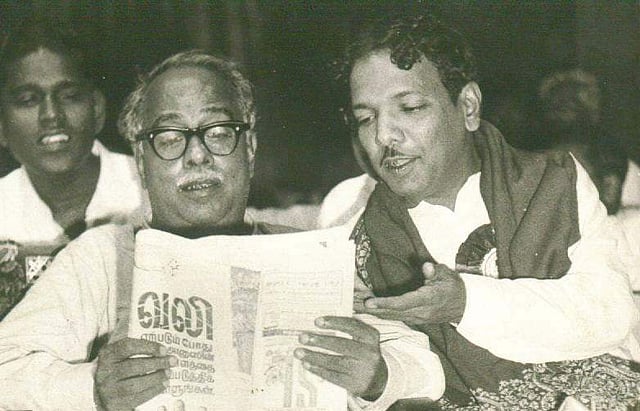 Annadurai CN, former Tamil Nadu Chief Minister alongwith M Karunanidhi. (File Photo | EPS)