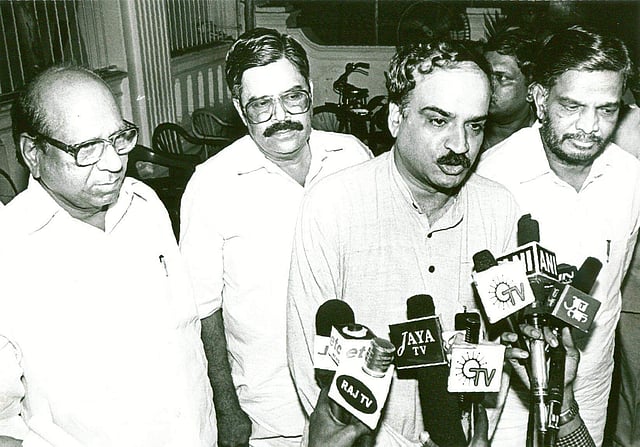 Then Union Minister HN Ananth Kumar relaxing during a three-day camp organized by RSS in Bengaluru. (File Photo | EPS)Then Union Minister Ananth Kumar at his office. (File Photo | EPS)A police officer announces the arrest of BJP leaders Sushma Swaraj, Arun Jaitley, Ananth Kumar and Bhartiya Janata Yuva Morcha president Anurag Takhur during the party Rashtriya Ekta Yatra at Madhavpur along Jammu-Punjab border. (File Photo | PTI)Senior BJP leader and former Delhi CM Sushma Swaraj waving at the crowd during in an election campaign in Bangalore. Chamarajpet BJP candidate Pramila Nesargi and BJP National General Secretary Anantha Kumar are also seen. (File Photo | EPS)Then Union Minister HN Ananth Kumar with senior BJP leader Murli Manohar Joshi. (File Photo | EPS)HN Ananth Kumar with then Karnataka CM SM Krishna. (File Photo | EPS)Then Union Home Minister LK Advani with Union Tourism Minister Jagmohan (L) and Urban Development Minister Ananth Kumar in New Delhi. (File Photo | PTI)Then Gujarat CM Narendra Modi (C), BJP National Secretary, H N Ananth Kumar and Chamarjpet constituency candidate Pramila Nesargi showing the victory sign after offering pooja at Dharmaraya Temple before attending a public meet for campaigning. (File Photo | EPS)The Karnataka BJP chief KS Eshwarappa and MP Ananth Kumar arrested by police for Jail Baro in Bengaluru. (File Photo | EPS)