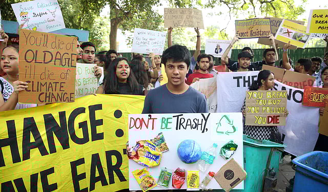 Throughout the world Friday, young people banded together to demand that world leaders headed to a United Nations summit in New York step up their efforts to combat climate change. IN PIC: A scene from the protest organised in New Delhi. (Photo | Shekhar Yadav, EPS)
