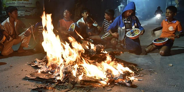 Bhogi pongal is the first day of the four-day Pongal festival celebrated in Tamil Nadu. On this day, people discard their old belongings in a bonfire and celebrate ownership of new possessions. (Photo | EPS, P Jawahar)