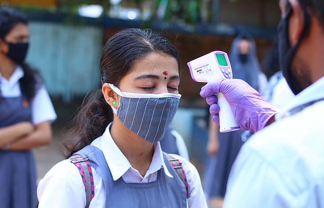 The government high school at Kattikulam in Wayanad had to be extra cautious as seven of the 128 students who wrote the SSLC exam at the centre were under home quarantine. (Photo | Albin Mathew, EPS)Students had to undergo thermal screening before entering the exam hall at Kattikulam in Wayanad. (Photo | Albin Mathew, EPS)Red Cross volunteers were seen giving masks to students attending exams at the Government GHSS Cotton Hill in Thiruvananthapuram. (Photo | B P Deepu, EPS)As examinations have begun amid a rise in Covid-19 positive cases, wearing face masks was made mandatory for all students, teachers, parents, and staff. (Photo | B P Deepu, EPS)A separate team of teachers had also been assigned to conduct thermal screening of the students and to direct them to wash their hands using soaps or sanitizers. (Photo | B P Deepu, EPS)Students attending the SSLC examination at Government GHSS Cotton Hill in Thiruvananthapuram being given sanitiser before entering the school.(Photo | BP Deepu, EPS)Students offering prayer before receiving the question paper at the BEM Girls Higher Secondary School in Kozhikode. (Photo | T P Sooraj, EPS)All schools have facilitated special arrangements for washing hands, and students unable to buy masks beforehand can procure them from special counters set up at their respective school centres. (Photo | A Sanesh, EPS)The Kerala government has decided to conduct the public examination this month itself even though the opposition demanded postponement in the wake of the ongoing coronavirus crisis. (Photo | Vincent Pulickal, EPS)