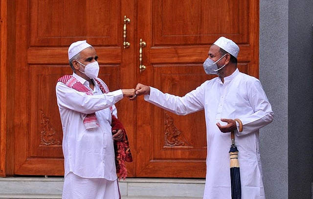 Muslim devotees greet each other after Eid al-Adha prayer in Kochi. (Photo | A Sanesh, EPS)
