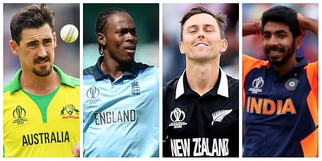 #1 MITCHELL STARC (AUSTRALIA): INNG: 10, WK: 27, ECO: 5.43, BEST: 5/26 (Photo | AP)#2 LOCKIE FERGUSON (NEW ZEALAND): INNG: 9, WK: 21, ECO: 4.88, BEST: 4/37 (Photo | AP)#3 JOFRA ARCHER (ENGLAND): INNG: 11, WK: 20, ECO: 4.57, BEST: 3/27 (Photo | AP)#4 MUSTAFIZUR RAHMAN (BANGLADESH): INNG: 8, WK: 20, ECO: 6.70, BEST: 5/59 (Photo | AP)#5 JASPRIT BUMRAH (INDIA): INNG: 9, WK: 18, ECO: 4.41, BEST: 4/55 (Photo | AP)#6 MARK WOOD (ENGLAND): INNG: 10, WK: 18, ECO: 5.16, BEST: 3/18 (Photo | AP)#7 MOHAMMAD AAMIR (PAKISTAN): INNG: 8, WK: 17, ECO: 4.90, BEST: 5/30 (Photo | AP)#8 TRENT BOULT (NEW ZEALAND): INNG: 10, WK: 17, ECO: 4.83, BEST: 4/30 (Photo | AP)#9 SHAHEEN AFRIDI (PAKISTAN): INNG: 5, WK: 16, ECO: 4.96, BEST: 6/35 (Photo | AP)#10 CHRIS WOAKES (ENGLAND): INNG: 11, WK: 16, ECO: 5.24, BEST: 3/20 (Photo | AP)
