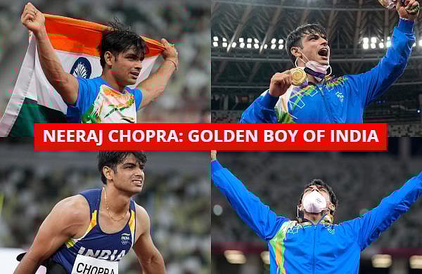 Neeraj Chopra, of India, competes in the men's javelin throw final at the 2020 Summer Olympics, Saturday, Aug. 7, 2021, in Tokyo. (Photo | AP)Neeraj Chopra, of India, competes in the men's javelin throw final at the 2020 Summer Olympics, Saturday, Aug. 7, 2021, in Tokyo. (Photo | AP)Neeraj Chopra, of India, competes in the men's javelin throw final at the 2020 Summer Olympics, Saturday, Aug. 7, 2021, in Tokyo. (Photo | AP)Neeraj Chopra, of India, competes in the men's javelin throw final at the 2020 Summer Olympics, Saturday, Aug. 7, 2021, in Tokyo. (Photo | AP)Neeraj Chopra, of India, competes in the men's javelin throw final at the 2020 Summer Olympics, Saturday, Aug. 7, 2021, in Tokyo. (Photo | AP)Neeraj Chopra, of India, competes in the men's javelin throw final at the 2020 Summer Olympics, Saturday, Aug. 7, 2021, in Tokyo. (Photo | AP)Neeraj Chopra, of India, celebrates after winning the gold medal in the men's javelin throw final at the 2020 Summer Olympics, Saturday, Aug. 7, 2021, in Tokyo. (Photo | AP)Neeraj Chopra, of India, celebrates after winning the men's javelin throw at the 2020 Summer Olympics, Saturday, Aug. 7, 2021, in Tokyo. (Photo | AP)Neeraj Chopra, of India, celebrates after winning the men's javelin throw at the 2020 Summer Olympics, Saturday, Aug. 7, 2021, in Tokyo. (Photo | AP)Neeraj Chopra, of India, celebrates after winning the men's javelin throw at the 2020 Summer Olympics, Saturday, Aug. 7, 2021, in Tokyo. (Photo | AP)Neeraj Chopra, of India, celebrates after winning the gold medal in the men's javelin throw final at the 2020 Summer Olympics, Saturday, Aug. 7, 2021, in Tokyo. (Photo | AP)Neeraj Chopra, of India, celebrates after winning the gold medal in the men's javelin throw final at the 2020 Summer Olympics, Saturday, Aug. 7, 2021, in Tokyo. (Photo | AP)Neeraj Chopra, of India, center, celebrates after winning the gold medal with silver medalist Jakub Vadlejch, of the Czech Republic, and bronze medalist Vitezslav Vesely, of the Czech Republic, in the men's javelin throw final at the 2020 Summer Olympics, Saturday, Aug. 7, 2021, in Tokyo. (Photo | AP)Gold medalist Neeraj Chopra, of India, center, stands with silver medalist Jakub Vadlejch, of Czech Republic, left, and bronze medalist Vitezslav Vesely, of Czech Republic, during the medal ceremony for the men's javelin throw at the 2020 Summer Olympics, Saturday, Aug. 7, 2021, in Tokyo. (Photo | AP)Gold medalist Neeraj Chopra, of India, poses during the medal ceremony for the men's javelin throw at the 2020 Summer Olympics, Saturday, Aug. 7, 2021, in Tokyo. (Photo | AP)Gold medalist Neeraj Chopra, of India, poses during the medal ceremony for the men's javelin throw at the 2020 Summer Olympics, Saturday, Aug. 7, 2021, in Tokyo. (Photo | AP)Gold medalist Neeraj Chopra, of India, reacts as he stands on the podium for the medal ceremony for the men's javelin throw at the 2020 Summer Olympics, Saturday, Aug. 7, 2021, in Tokyo. (Photo | AP)Gold medalist Neeraj Chopra, of India, center, stands with silver medalist Jakub Vadlejch, of Czech Republic, left, and bronze medalist Vitezslav Vesely, of Czech Republic, during the medal ceremony for the men's javelin throw at the 2020 Summer Olympics, Saturday, Aug. 7, 2021, in Tokyo. (Photo | AP)Gold medalist Neeraj Chopra, of India, poses during the medal ceremony for the men's javelin throw at the 2020 Summer Olympics, Saturday, Aug. 7, 2021, in Tokyo. (Photo | AP)Gold medalist Neeraj Chopra, of India, poses during the medal ceremony for the men's javelin throw at the 2020 Summer Olympics, Saturday, Aug. 7, 2021, in Tokyo. (Photo | AP)
