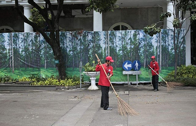 However, between 2000 and 2005, the country lost 310,00 hectares of all its forest a year, with the figure increasing to 690,000 hectares annually from 2006 to 2010. (Photo courtesy: Wiki Commons | Hayden - Oil Palm Concession)In 2012, Indonesia lost 840,000 hectares of forest cover, overtaking Brazil's depletion of 460,000 hectares, despite its forest being a quarter of the size of the Amazon rainforest. This has led to the nation becoming the world's third-largest producer of greenhouse gases behind China and the US, with 85% of its emissions resulting from deforestation alone. (File photo | AP)Indonesia now is lush with greenery, albeit fake, with lifeless extravaganzas of plastic ferns and autumnal trees that don't drop any leaves blanketing shopping malls and construction sites. Shoppers walk past artificial trees at a mall in Jakarta. (File photo | AP)Parking attendants chat near a banner covering a construction site at the main business district in Jakarta. (File photo | AP)Shoppers take a break under artificial trees at a shopping mall in Jakarta. (File photo | AP)Roughly 40% of the deforestation took place in nominally protected areas, reports stated. A man walks past a wall decorated with artificial plants at a shopping mall in Jakarta. (File photo | AP)Muslim women stand inside an elevator decorated with tree wallpapers at a hospital in Jakarta. (File photo | AP)Guests sit under an artificial tree during a wedding party in Jakarta. (File photo | AP)Workers take a break at an artificial garden at Terminal 3 at Soekarno-Hatta International Airport in Tangerang, Indonesia. The urban embellishments creates an irony as environmental destruction takes place elsewhere in the nation. (File photo | AP)A motorist rides past a construction site covered with metal sheets decorated with large stickers depicting greeneries at the main business district in Jakarta. (File photo | AP)Although frequent forest fires result in the depletion of nation's natural cover, palm oil and timber plantation account as primary reasons for deforestation of Borneo and Papua. A woman walks past banners covering a construction site in Jakarta. (File photo | AP)It needs to be seen if the fake nature is of a piece with the country today. People take an escalator adorned with environmental awareness message at a shopping mall in Jakarta. (File photo | AP)