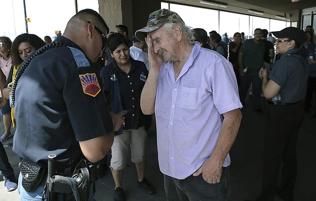 El Paso Fire Medical personnel arrive at the scene of a shooting at a Walmart near the Cielo Vista Mall in Texas.A police officer runs toward the scene of a shooting at a Walmart near Cielo Vista Mall in Texas.Walmart employees react after an active shooter opened fire at the store in Texas.Walmart employees comfort one another after an active shooter opened fire at the store in Texas.An employee crosses into the crime scene following a shooting at a Walmart in Texas.People arrive at MacArthur Elementary looking for family and friends as the school is being used a re-unification center during the aftermath of a shooting at a shopping mall in Texas.People arrive at MacArthur Elementary looking for family and friends as the school is being used a re-unification center during the aftermath of a shooting at the Walmart near the Cielo Vista Mall in Texas.Police interview witnesses at Sam's Club where Walmart shoppers were evacuated near the scene of a shooting at a shopping mall in Texas.People arrive at MacArthur Elementary looking for family and friends as the school is being used as a reunification center during the aftermath of a shooting at a Walmart near the Cielo Vista Mall in Texas.Several law enforcement agencies respond to an active shooter Saturday at a Walmart in Texas.Walmart customers are escorted from the store after a gunman opened fire on shoppers near the Cielo Vista Mall in Texas.People arrive at MacArthur Elementary looking for family and friends as the school is being used a re-unification center during the aftermath of a shooting at a Walmart near the Cielo Vista Mall in Texas.Carlos Flores and his wife, Jacquelyn Flores, both of El Paso, Texas, walk into a United Blood Services blood bank to donate blood following a mass shooting incident in Texas, earlier in the day.A chaplain walks up to MacArthur Elementary to assist families as the school is being used a reunification center during the aftermath of a shooting at a Walmart near the Cielo Vista Mall in Texas.