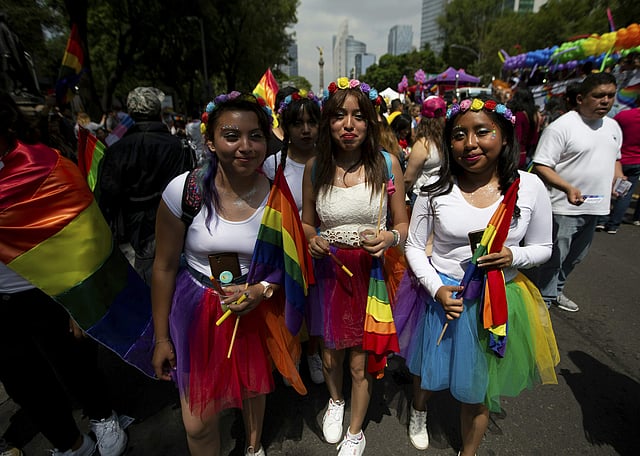 Rainbow flags and umbrellas swayed and music pounded as the march along Mexico City’s Paseo de la Reforma avenue got underway, with couples, families and activists seeking to raise visibility for sexual diversity in the country. (Photo | AP)Same-sex civil unions have been legal in Mexico City since 2007, and gay marriage since 2009. (Photo | AP)A handful of Mexican states have also legalized same-sex unions, which are supposed to be recognized nationwide. (Photo | AP)But pride participants said Mexico has a long way to go in becoming a more tolerant and accepting place for LGBTQ individuals. (Photo | AP)IN PIC: Mexico City's Angel of Independence dominates the starting point of the gay pride parade. (Photo | AP)IN PIC: A reveler wearing a T-Shirt with the image of Guadalupe Virgin takes part in the gay pride parade in Mexico City. (Photo | AP)