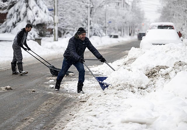 Vancouver International Airport temporarily suspended all incoming and outgoing flights early Tuesday, holding departing aircraft at their gates and stranding passengers aboard some arriving flights for hours. Residents use sleigh shovels to dig out their driveways after a snowplow passed, after a snowstorm in Ottawa. (Photo | AP)