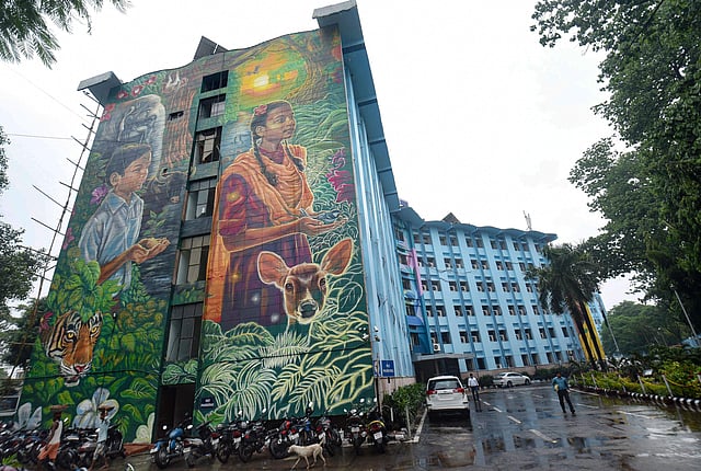 PATNA: Commuters passing by the Vidyut Bhawan on Patna's famous Bailey Road are now stopping to admire it as a team of Indian and foreign artists have transformed its dull facade into a vibrant thematic artwork with a subtle message on preserving nature.