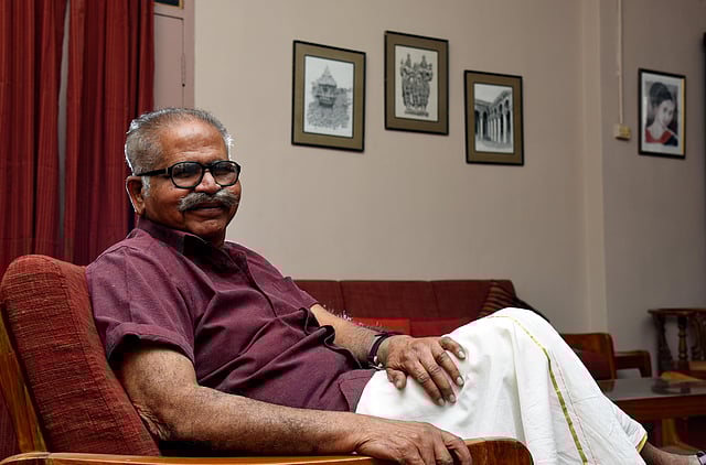 As 84-year-old Manohar Devadoss draws you into a conversation, you can't help but notice the sparkle in his eye. Eager to tell you stories from his very eventful life, he has a way with words -- and with his hands. So much so that he has over 200 artworks to his name despite suffering from retinal degeneration, a condition that led him to lose sight first in one eye and then eventually in the other. Honoured recently with the Padma Shri, most of his works have been showcased in his seven books, besides heritage greeting cards and art exhibitions.