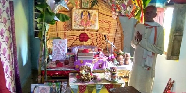 Every day, the elderly Brahmin performs special prayers and rituals before the pictures of his ancestors and Ali.