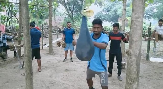 The young Nripendra Singh along with other like-minded villagers has developed the desi open gym using just bamboo and bricks.