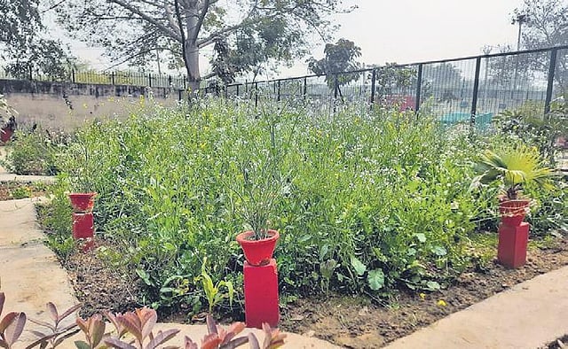 The kitchen garden which is spread across 4,500 square feet is now filled with seasonal vegetables like carrot, radish, spinach, green chillies, mustard and is also having a variety of flowers including rose.