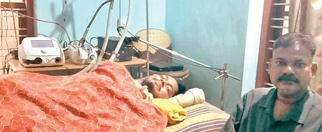 “He is just 32 and has a long life ahead. He was in the ICU for around two years, with little hope. Now, he can speak and feel. That is a positive sign. So I’m confident he will get his normal life back. I am living for that moment,” Vipin says. Lijo suffered paralysis and was diagnosed with acute encephalomyelitis neuropathy in 2007. Treated at the Sree Chitra Tirunal Institute for Medical Sciences for one-and-a-half-years, he was shifted to the medical college hospital in Karakonam. After two years there, they had to shift to the rented house with the ventilator, which now runs up electricity charges of around Rs 6,000.