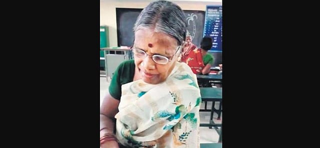 Kothamangalam government elementary school headmistress Chitra Rani, from whom Dhanabakiyam took regular classes, said, “Unlike many others, Dhanabakiyam was very keen. She has retired from her employment as an Anganwadi worker. She used to place her thumb impression to get her pension and said she always wanted to sign her name one day. When we invited her to join the literacy programme, she showed great interest.”