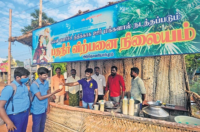 That was when the entire village joined hands in lending support and help. They set up a ‘Kalvi Nidhi Kulu’ (education fund committee) along the Thoothukudi-Tirunelveli NH, where the money generated by selling pathaneer, a sap or a juice tapped from the tender fronds of palmyra trees, is used to meet the expenses of the school.