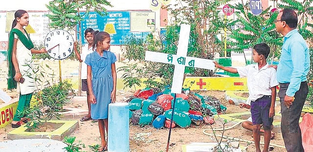BARGARH: In his quest to ensure quality education for the children of his village and remove the fear of mathematics from children’s minds, a school teacher from Paikmal block in Bargarh has developed a first-of-its-kind ‘Maths Park’ on the premises of the government primary school in his village Pujharipali.