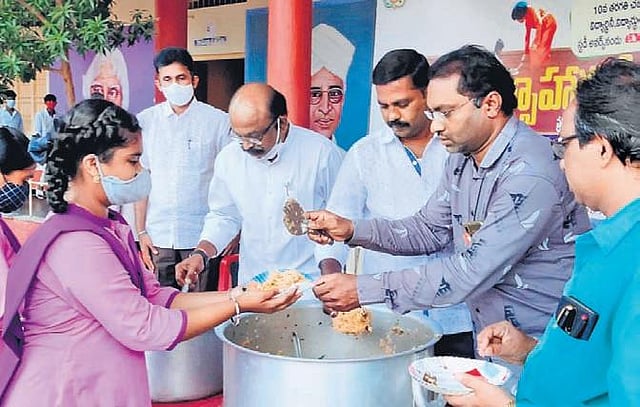“Before the Covid-19 pandemic, we provided evening snacks (Svalpaahaara Seva) to Class 10 students of government schools. Recently, we restarted it and now serve food to an average 150 students every day. We follow a menu on all seven days and distribute vegetable biryani, tomato rice, coconut rice, lemon rice and upma to the students so that they can concentrate better on their studies and fare well,” Surendra Chunduri, State coordinator of Sri Satya Sai Seva Samithi, said.