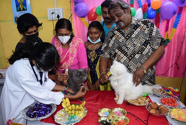 COIMBATORE: Taking the human-feline affection up a notch, a resident in the city conducted a Valaikappu (baby shower) for his two Persian cats at a pet clinic in RS Puram on Sunday.