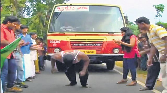 Among his power-packed attempts are pulling a 10-tonne KSRTC bus for 50 metres with his teeth, stopping a ceiling fan with his finger, stopping a high-speed pedestal fan, breaking helmets and hockey sticks, and smashing tender coconuts using his elbow, knee and head.Abheesh says his efforts are not to attain fame but to prove that the human body has the potential to endure, and achieve, the seemingly impossible.