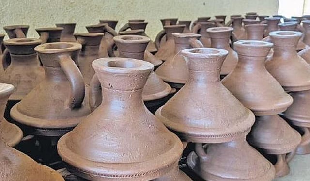 While the potters are busy through the year, their work is defined by the flavours of the season. Up until the end of August, they were crafting clay idols of Lord Ganesha and Goddess Gowri for Ganesha Chaturthi, and have since shifted to making diyas for Deepavali. “Today, it’s encouraging to watch people’s interest in things organic and earthy, even for festivals. That’s a boon for us as we make clay Ganesha idols and other naturally-derived products,” says Babu, whose deft fingers are picking up one dhoop-stand after another from his wheel.