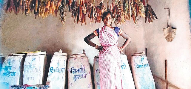 A native of Silpadi village, the Baiga tribal, counted among particularly vulnerable tribal groups, Lahari Bai lives with her parents in a two-room Indira Awas house. While one of the rooms acts as the living room and kitchen, the other one has been turned into a Beej Bank, which conserves around 150-plus rare seeds of millets including Kodo, Kutki, Sanwa, Madhia, Salhar and Kaag crops (most of them minor millets).