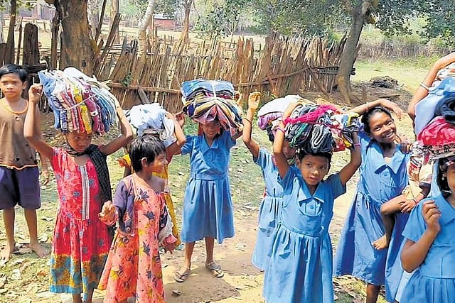 Prior to festivals, Gagan, who retired as a Class IV employee of Department of Posts, collects the clothes, shoes, toys, and utensils from people in Cuttack and Bhubaneswar and Annapurna stitches and cleans them. He then distributes the items to those who need them in not just the Twin City but also tribal-dominated villages in the state.