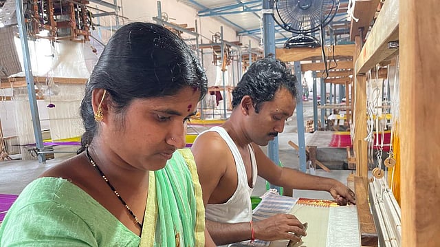 “It is becoming extremely difficult to continue with this work due to poor payments for the tedious and laborious work. Every day comes with its own set of challenges as I manage my children and family and then come to work. If the weather is supportive, we can weave a good number of sarees in a month, but with bad weather, the work becomes slow and that affects our earnings too,” Hemlatha adds.