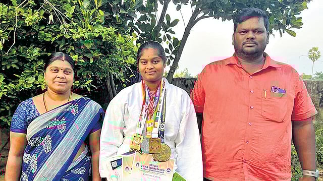 Her father, Jampaiah, tells TNIE, “I have been passionate about martial arts since my childhood. I took Chandana to competitions where I participated, and she expressed interest at a young age after watching me.”