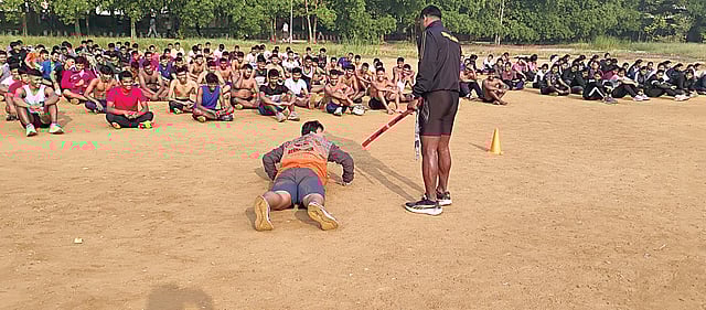 Amid the hustle-bustle, one side of the field presents an extraordinary sight. A gathering of around 700 strictly disciplined young men and women pushing their limits, resembling the rigorous drill of an army battalion under the stern eyes of two supervisors. Their only aim is to get entry into the armed and police forces and the trainer duo, ex-servicemen Simanchal Barik and Bhaskar Reddy, are making it possible. The respect they command is also openly visible as each trainer bends to touch their feet before stepping onto the ground and then while leaving.