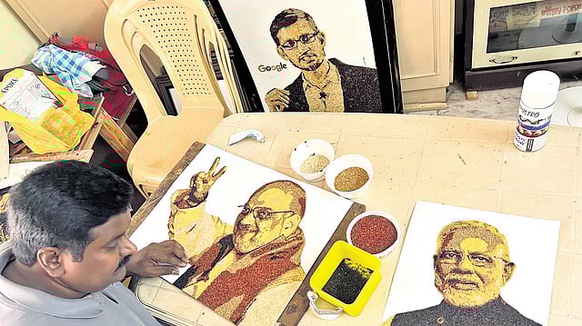 Inspired by the Millet Mission, introduced by Prime Minister Narendra Modi to promote millet farming and consumption, Kumar began crafting portraits using millets. During the COVID-19 pandemic, he observed a lack of nutritious food and recognised the health benefits of millets. “Many Indians are unaware of the advantages of millets due to lack of proper knowledge. I chose this medium to draw public attention to the significance of millets,” he explained.