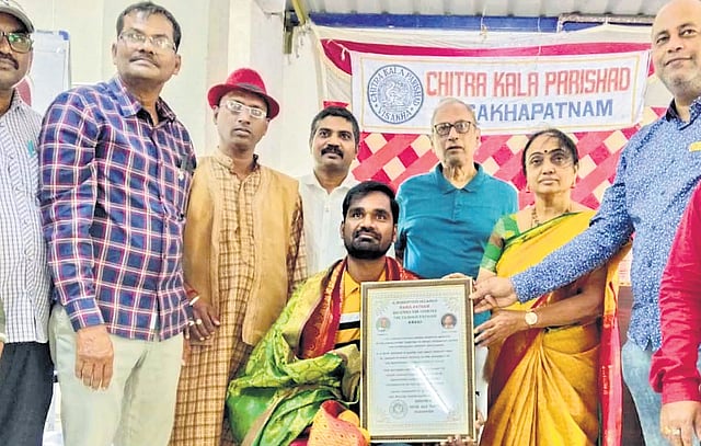 He received various awards, rewards as Chitra Kala Ratna, Kala Guruvu, Art of legend, Picasso Award, DadaSaheb Phalke Award, Ananda Ratna, Leonardo Davency international art award, Global Icon of India award, Youth Icon award, World talent award, Vaddadi Papayya memorial award and felicitated by various associations and organisations. His name entered in various world records as America book of world records, Oscar book of world records, Great Indian book of records, London book of world records, Guinness book of World Records participation certificate and a gold medal achieved in 2022.